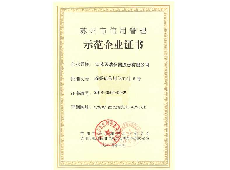 苏州市信用管理示范企业证书