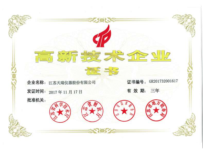高新技术产品认定证书